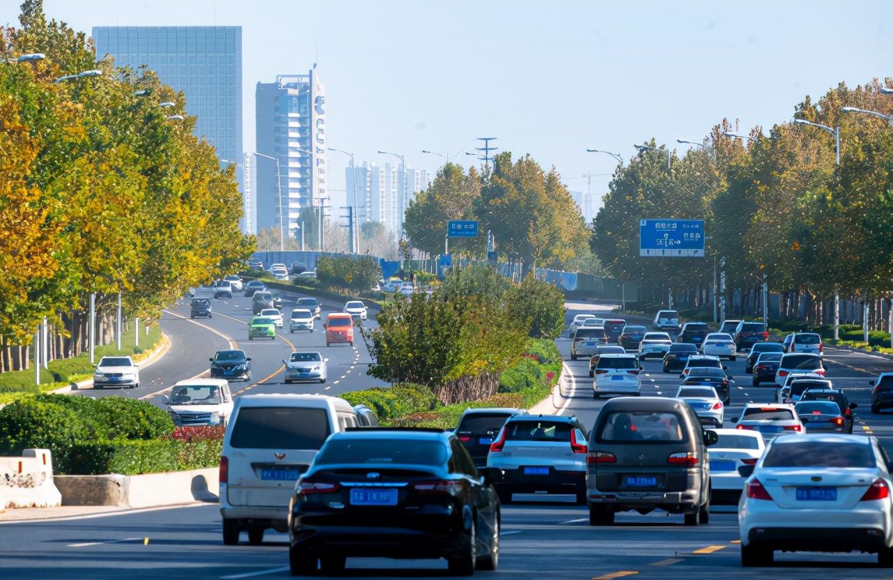 2021年11月13日,河南开封,郑开大道终点开封市大梁路西端金明广场