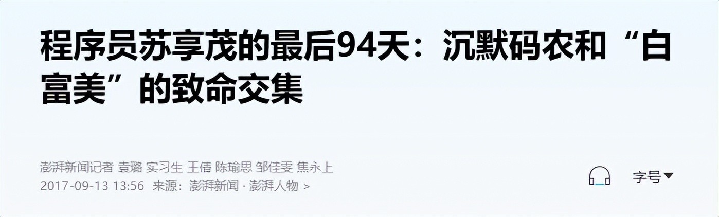澎湃新闻——程序员苏享茂的最后94天:沉默码农和“白富美”的致命交集
