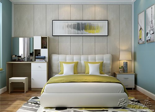 3、床头不应该太靠近墙壁或太远离墙壁,应该与床尾保持平衡。