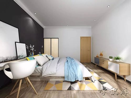 5、床头不应该太靠近书桌或太远离书桌,应该与床尾保持平衡。
