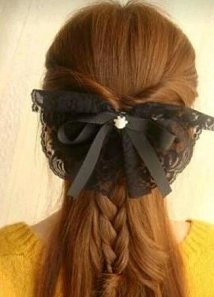 下图这一款与第一款公主头发型相似,不同的是它把左右两侧的辫子合起来后,又另外扎成了麻花辫。