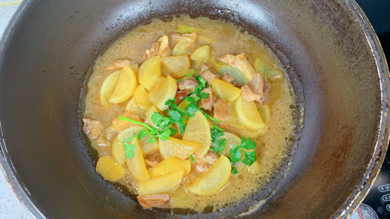炖一个小时后,转大火收汁即可,喜欢喝汤的朋友也可以多留一些汤,收汁这一步可以省略。这个时候炖出来的羊肉软烂入味,胡萝卜咸香好吃,再点缀一些香菜碎,更是美味翻倍。