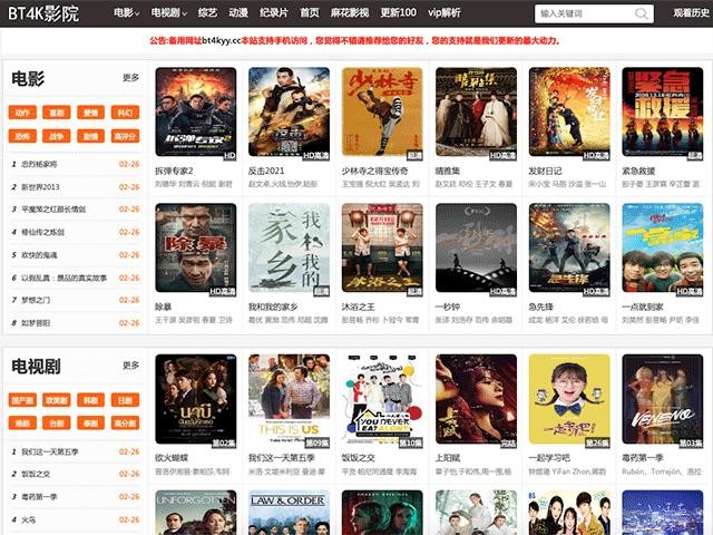 bt4k 影院是一个免费的在线影视网站。有了它,你不仅可以电影,还可以追剧、看国内外综艺。同时,它还提供了国内各大视频网站 VIP 电影视频解析服务,感兴趣的小伙伴可以去体验一下。
