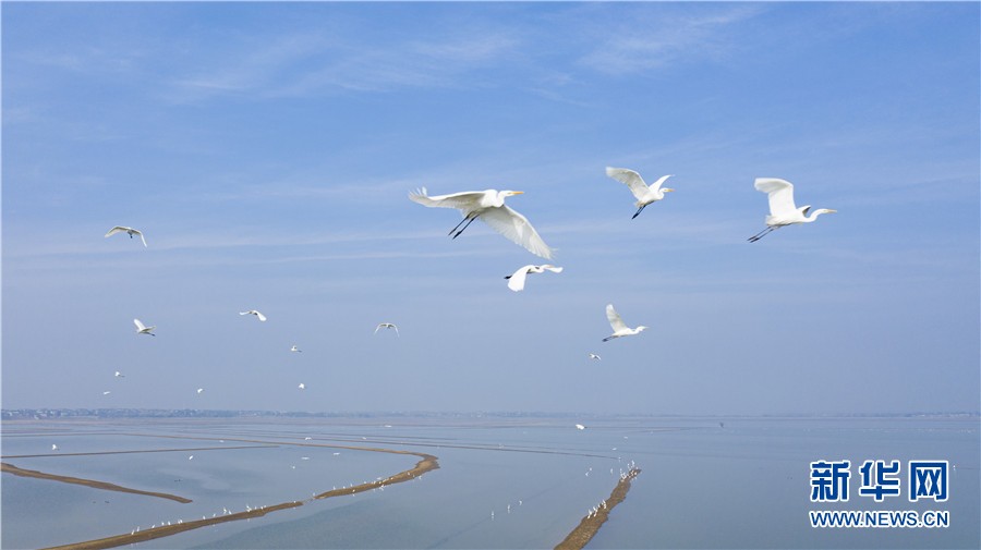 12月25日,航拍石臼湖。新华网发(王帆 摄)