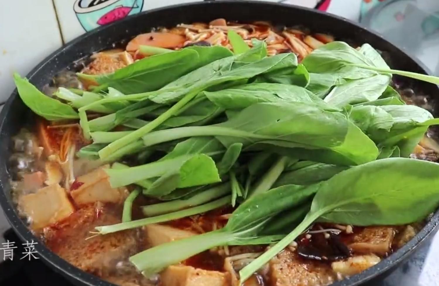8,煮开2分钟加入自己喜欢的青菜煮上二分钟