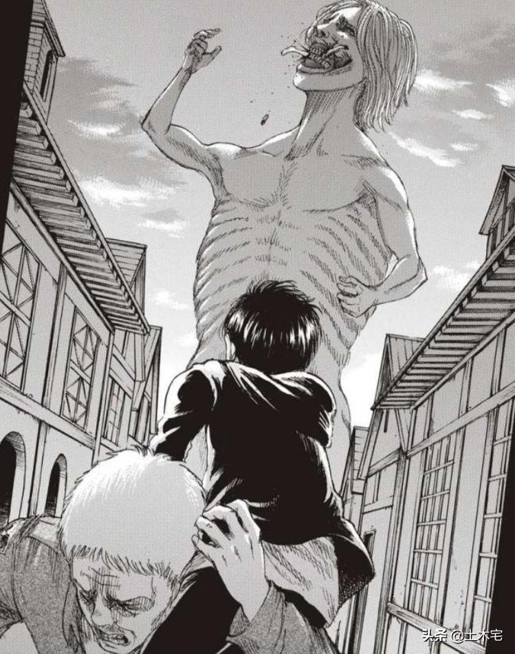 夺夫之仇不共戴天,这是当时对戴娜评价最多的一句话,上图这一幕大家应该都相当熟悉了吧,这是当时玛利亚之墙被破,艾伦母亲被戴娜所变的无垢巨人吃掉的场景,当年戴娜被变成无垢巨人时,就对艾伦的父亲说过,无论你到哪里,无论我变成什么样,我都会找到你,戴娜这句话可不是随便说说,因为她做到了,而且还是直接盯上了艾伦的母亲。