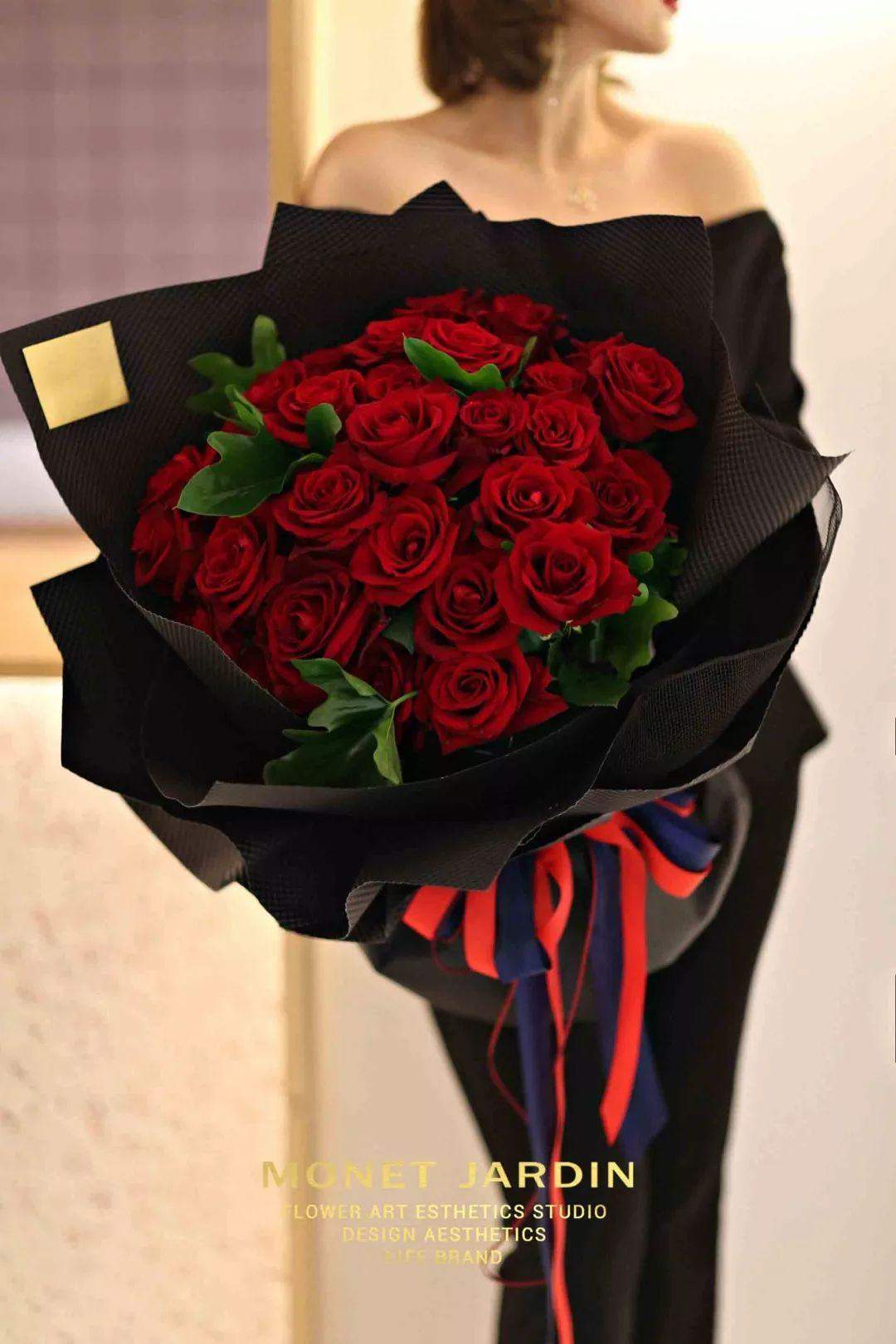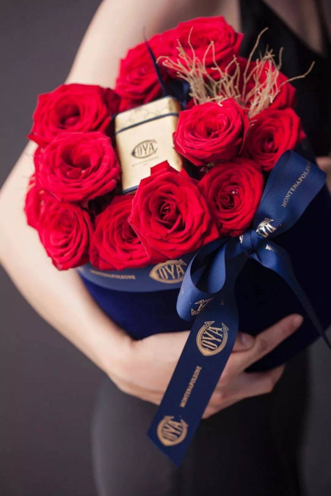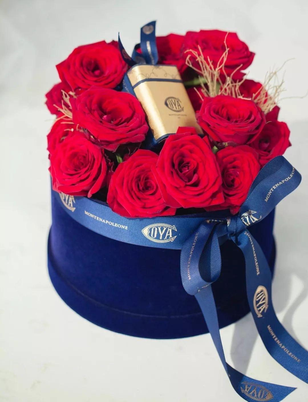 搭配灵感:蓝色,被看作是代表理智的色彩。它象征着清晰、合乎逻辑的态度。而红色是热烈,奔放的。蓝与红,两种极端颜色的碰撞,像极了坠入爱河的情侣们。丝绒质感的礼盒,更是给花礼提升了高级感。