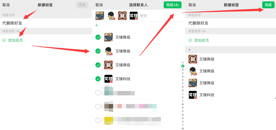 打开微信-通讯录-标签-左下角新增-填写代删除好友,再添加成员,选择你对这些好友可能需要删除的人添加上去。