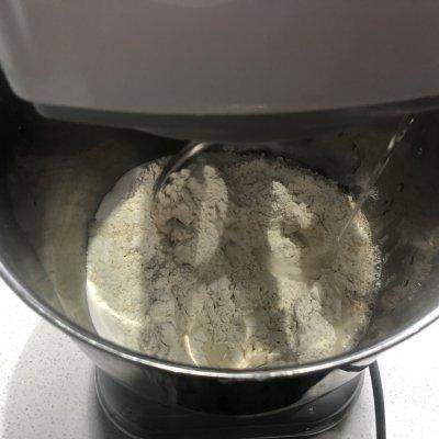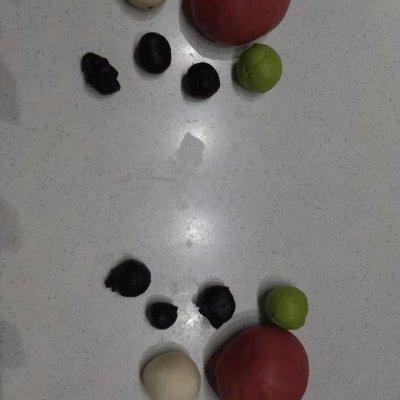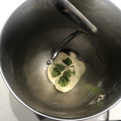 2、350g与抹茶粉放入整箱搅拌机拌匀家常好吃; 350g与红曲粉搅拌均匀; 100g与竹炭粉搅拌均匀 分别揉团室内家常松弛色素二十分钟