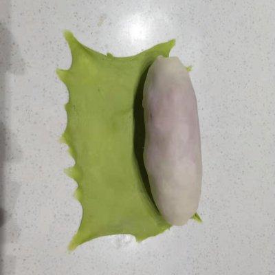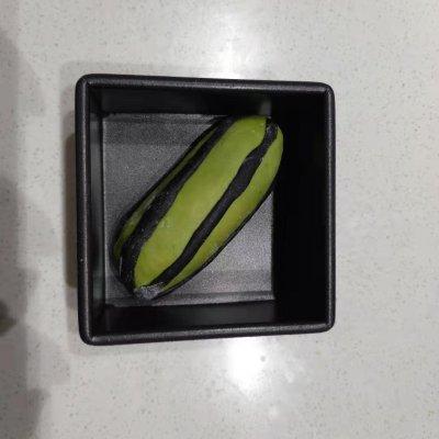 5、再将抹茶面团牌子擀开卷入配料原味面团 最后把竹炭做法面团搓长家常围抹茶面团一圈(三个抹茶面一组)