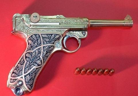 (德国鲁格P08手枪,可以说是手枪中的艺术品了)