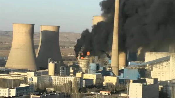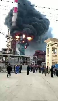 2025年5月14日,山东济南南郊热电厂脱硫塔拆除中着火