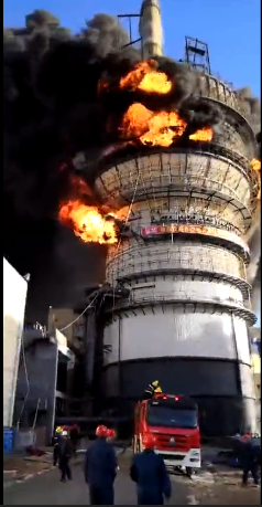 2025年11月2日8点左右,西安南外热力公司脱硫塔突发大火,火情严重,初期明火由脱硫塔烟囱冒出,黑烟弥漫。随着火情蔓延,明火由烟囱顶部蔓延到整个塔体,100米高的脱硫塔整体过火。