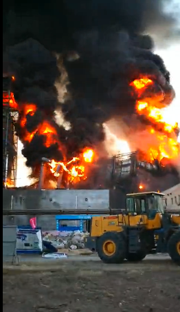 2025年5月3日,山东日照岚山区钢铁厂脱硫塔着火