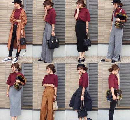 基础款类的衣服颜色都较为保险也不突兀,但是也要注意整体色彩的平衡以及色调的和谐。如果题主还是一位搭配小白可以先从简单不错的搭配套路如黑白灰三色相搭配,同色搭配、近似色搭配开始练习,然后再慢慢的递进。也可学习Miho博主的高超的配色搭配术如带优雅魅力标签的暗红色搭配黑色,上身的效果立刻把气质提升好几个段位。暗红与焦糖大胆的撞色,不仅展示了高超的搭配功底,还能迅速出彩。