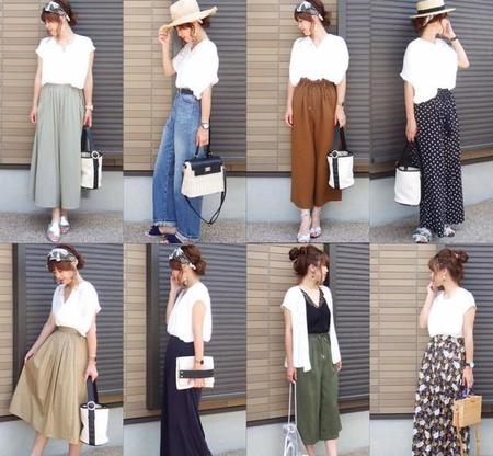 基础款的衣服款式都比较简洁,搭配时可以选简单款式与复杂(有点设计的款式)结合比如Miho博主选择一件刺绣的短袖小衫搭配纯色系的下装,繁简有序的结合,真是自己穿的漂亮别人看着也舒服。