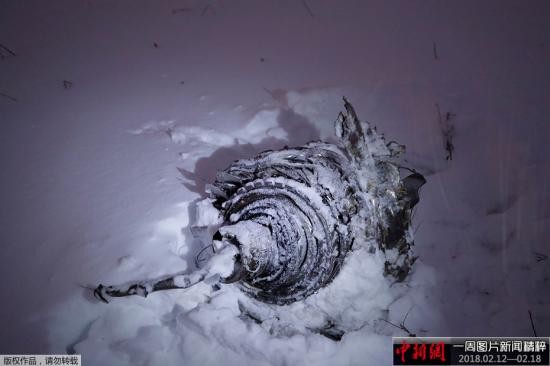 当地时间2月11日,俄罗斯一架载有71人的飞机在莫斯科州坠毁。图为坠机现场的飞机残骸。