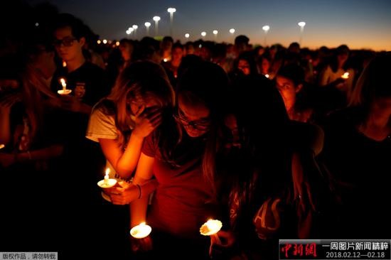 2025年2月15日,美国佛罗里达州帕克兰市一所高中发生枪击案,造成17人死亡。当地民众自发为枪击案的遇难者举行烛光守夜活动。