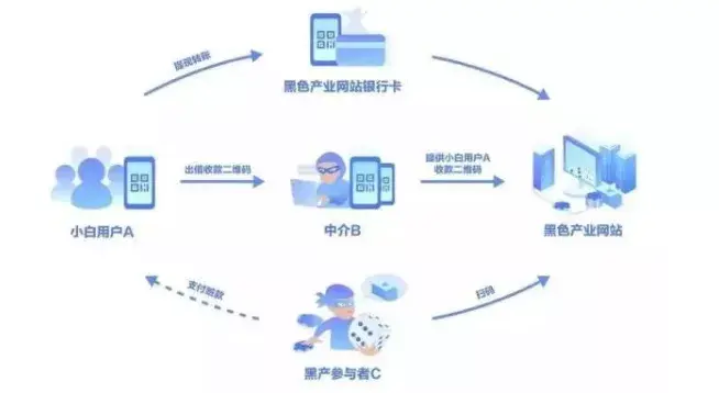 再次提醒上述行为属于违法犯罪!总结起来就是,出借收款码的用户A受“网络兼职赚佣金”诱惑,提供自己的收款码并缴纳保证金后,被中介平台B将用户A的收款二维码提供给涉及赌博、色情、诈骗等黑产活动的参与者C的黑产网站使用,利用用户A的收款二维码进行赃款收集。之后用户A再把赃款提现转账到黑产网站的银行卡账号,完成任务,赚取佣金。殊不知,正是这样的操作,黑产团伙将数以亿计的赃款,通过许多用户的账户将资金洗白。且由于涉及人数众多且方式隐蔽,给警方追踪资金的去向大大增加了难度。