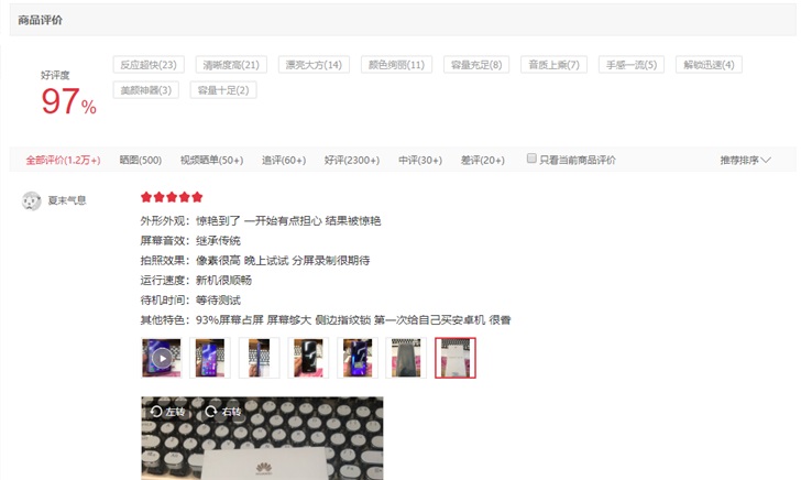 据IT之家了解,在商品的评价中,诸如反应超快、清晰度高、颜色绚丽、漂亮大方、手感一流等已经成为了nova7 SE的关键词,从消费者的评价中可以清晰地感觉到,nova7 SE是一款极具竞争力的5G新机。