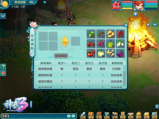 除了系统提示的梅+甜瓜+番茄+番茄的组合之外,还有李+梅+萝卜+辣椒、李+梅+枸杞+甜瓜、李+梅+茄子+茄子、李+梅+萝卜+萝卜、花生+辣椒+土豆+土豆、香梨+辣椒+花生+花生、土豆+香梨+枸杞+枸杞、香梨+甜瓜+土豆+土豆、枸杞+甜瓜+萝卜+萝卜等都可以调配出美味调料。玩家们也可以发挥自己的想象力,发现更多的美味调料配方提升烤肉品质,同时还可以解锁专属成就。