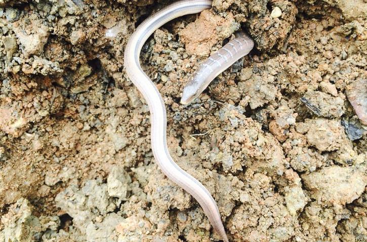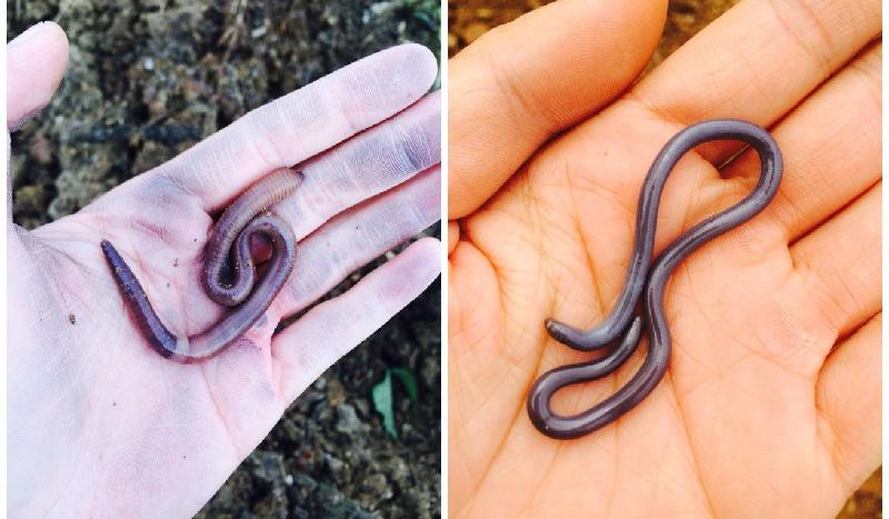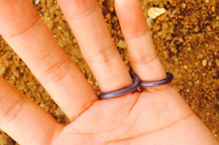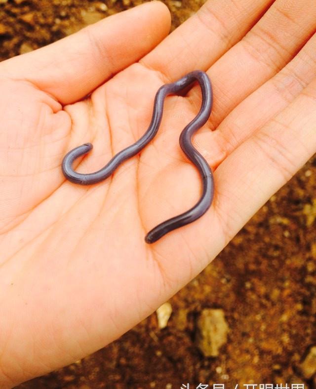 身体小,跟蚯蚓长得差不多,如果不仔细看,还真不知道是啥。传说中的紫色入耳蛇。