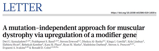 2025年7月24日,加拿大多伦多儿童病医院 Ronald D. Cohn 团队在 Nature 杂志发表了题为:A mutation-independent approach for muscular dystrophy via upregulation of a modifier gene 的最新论文。