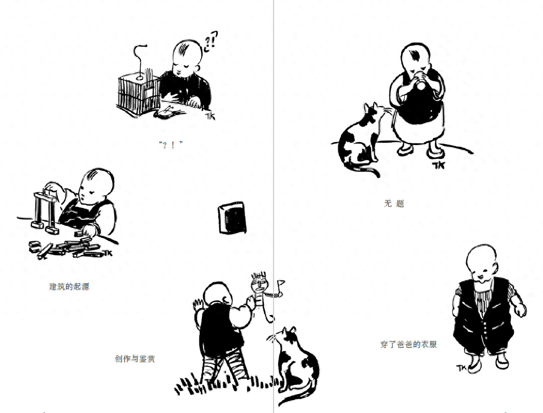 “成人们笑他们“傻”,称他们的生活为'儿戏',常常骂他们'淘气',禁止他们'吵闹'。这是成人的主观主义看法,是不理解儿童心理的人的粗暴态度。我能热爱他们,亲近他们,因此能深深地理解他们的心理,而确信他们这种行为是出于真诚的,值得注意的,因此兴奋而认真地作这些画。 "