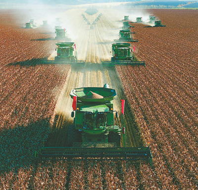 大型农机在黑龙江省北大荒集团九三分公司鹤山农场高粱基地作业。任宝吉摄