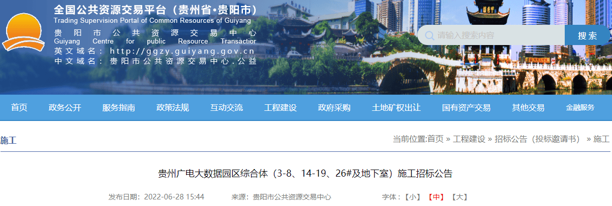 乐居新媒体 贵阳讯6月28日,贵阳市公共资源交易中心发布贵州广电大数据园区综合体(3-8、14-19、26#及地下室)施工招标公告。