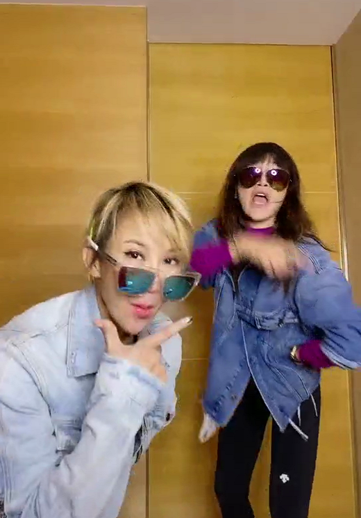 在11月9日,李玟晒出一段和二姐一起跳舞的视频。视频中,姐妹两人都穿一身牛仔,戴着墨镜,李玟依旧是黄色短发,姐姐却是披散着满头黑色长发。
