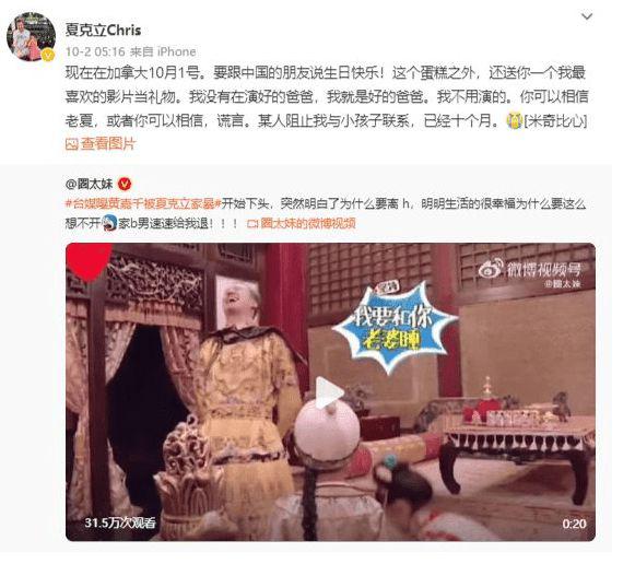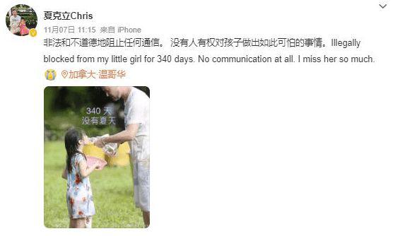 11 月 7 日,夏克立在社交平台发文称," 非法和不道德地组织任何通信,没有人有权对孩子做出如此可怕的事情。" 网友留言问家人是否能联系他?夏克立回应,如果联系的话可能会受到惩罚," 我无权接近,这才是重点,将近 1 年都没有联络权限 ",但随即删文。