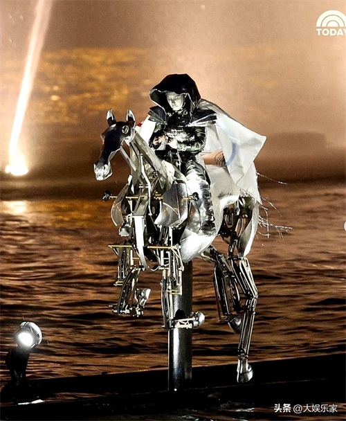 另一个在巴黎奥运开幕上引人热议的面具人,是一个蒙面骑一匹发光金属马,披星戴月般沿着塞纳河潇洒驰骋的神秘女骑士。