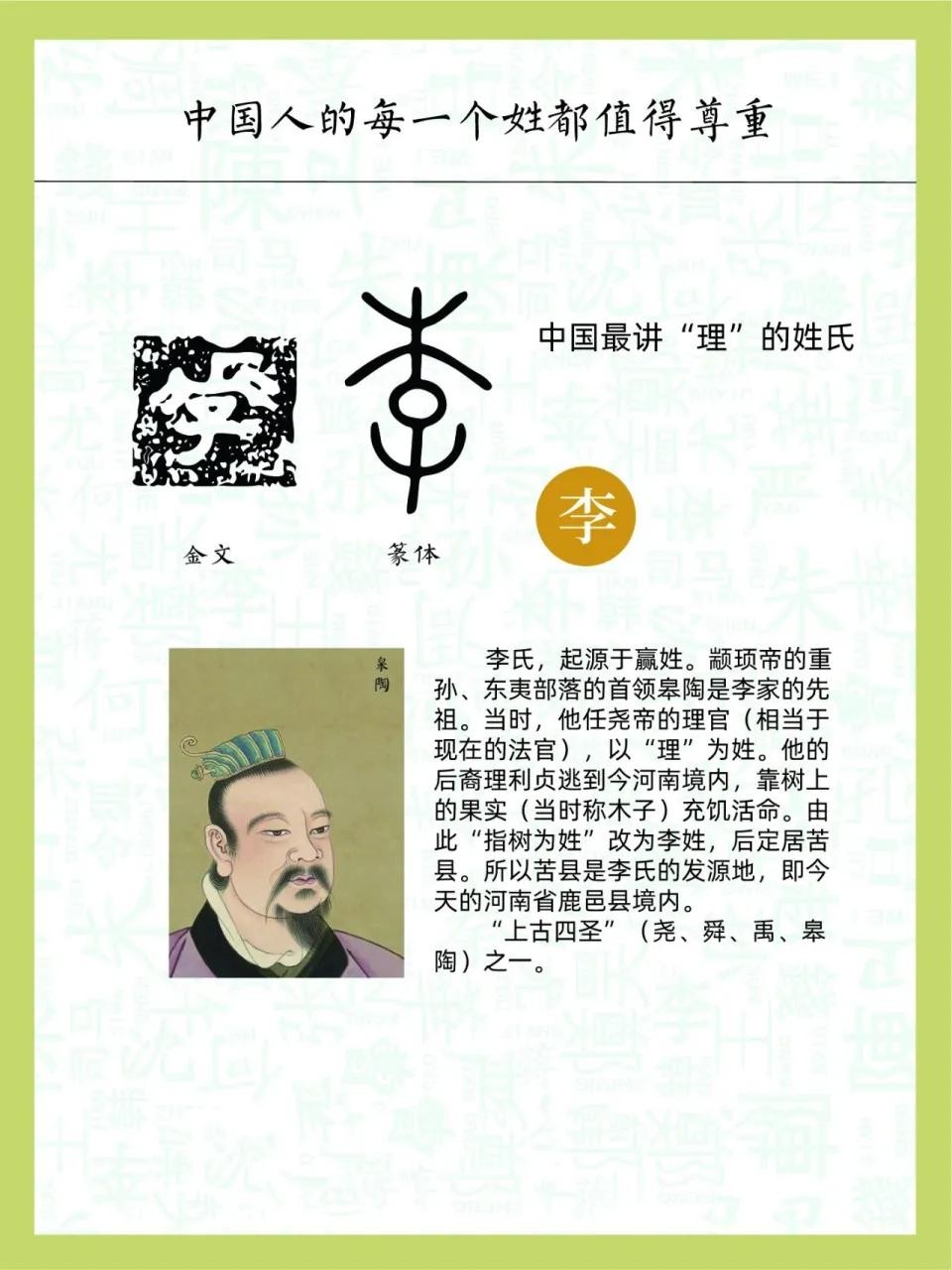 李姓的起源可以追溯到上古时期,与一位名叫皋陶的贤臣密切相关。皋陶是黄帝的后裔,曾在尧舜时期担任“大理”,掌管刑狱,以公正严明著称。