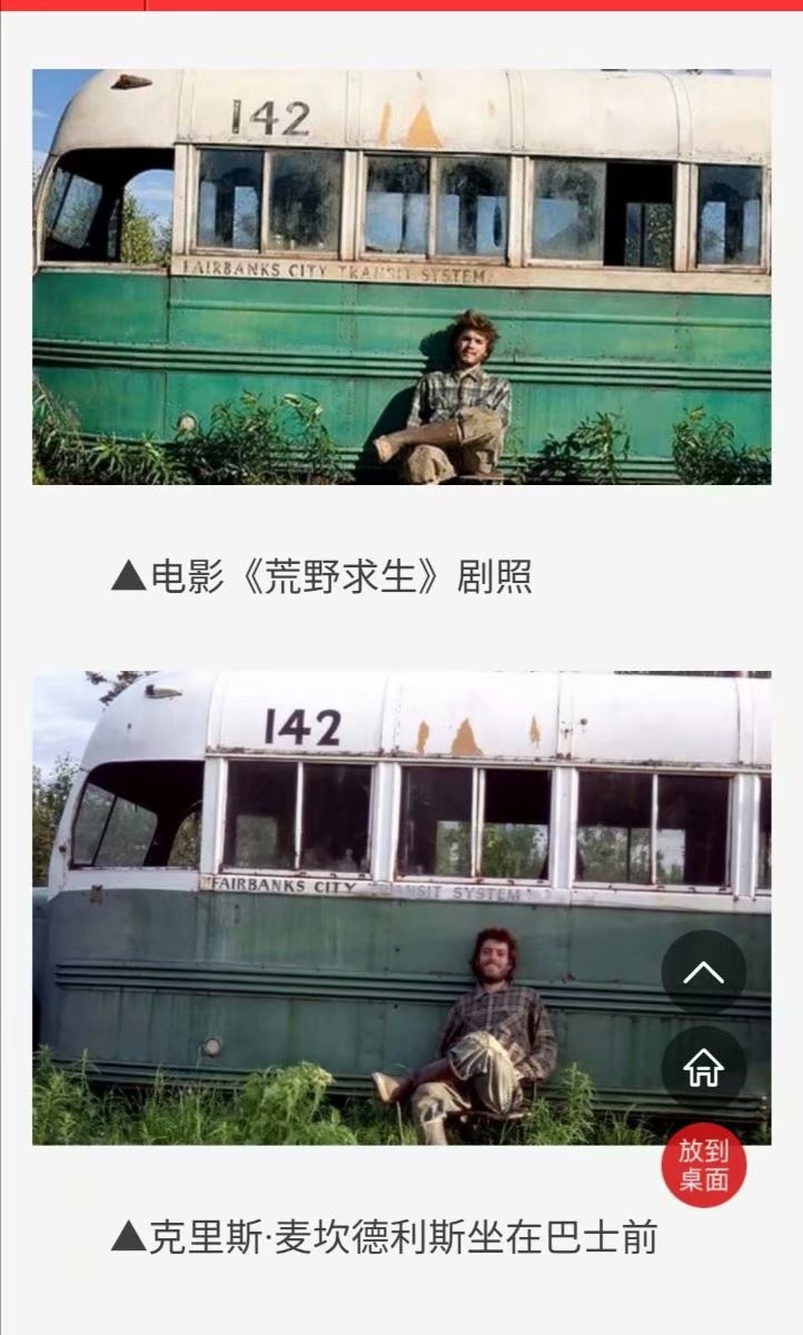 搜了下,这已经是一年前的事了。报道说是2020年6月19日。上一次看到与这辆巴士有关的消息,是去年初疫情隔离期。说2月一对年轻的夫妇远赴这辆巴士度蜜月,却出意外。当时网上有人说怀疑是谋杀。因为普通人的思维里,蜜月不是应该选择温馨浪漫的地方吗,为什么是这样一个让人绝望的将生命交付的地方?这辆巴士,在这部电影播出后的十来年里,已然成为了阿拉斯加的户外网红打卡地。以这辆巴士为点而延伸出去的无数路线,也多有前辈用伤亡为现行者做了标记。