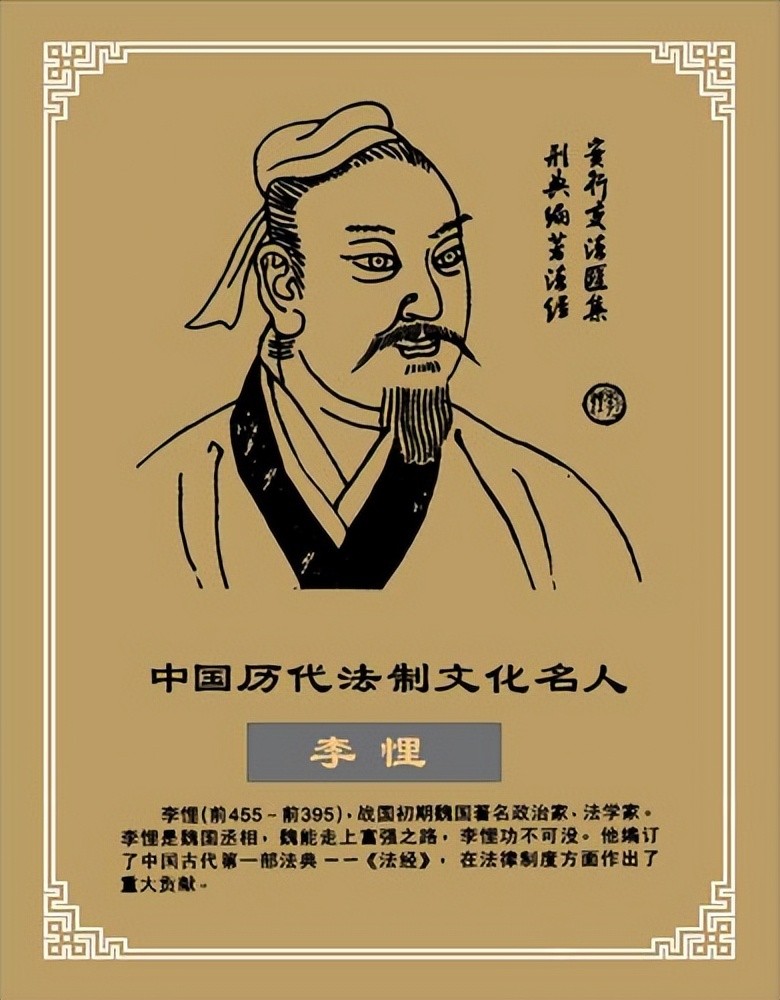 李悝,在魏国推行改革,并取得成效,使魏国成为一时强国;李悝编纂的《法经》是我国古代第一部法典;其“重农”和“法治”相结合的思想对后世商鞅、韩非产生巨大影响。
