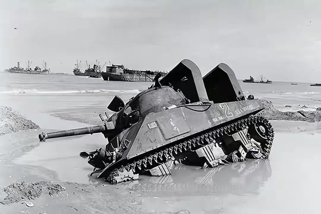 在突尼斯的登陆行动中,美国陆军的M4中型坦克在美国著名将领乔治·巴顿(George S.Patton)将军带领下紧随出场,为盟军将德意法西斯赶出北非地区做出了巨大贡献。此后,不论在欧洲战场还是太平洋战场,随处可见M4中型坦克的身影。在盟军反攻欧洲的“霸王行动”中,1944年6月6日的“D日”当天,最先登陆法国诺曼底海滩的美军坦克就是由数百辆M4中型坦克改装DD型水陆坦克,成为盟军迈向胜利的开路先锋。