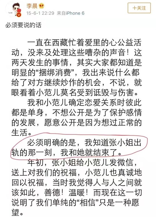 两人在同年的六月份分手,随后张馨予就傍上了李晨,两个人高调秀气了恩爱,因为张馨予的知名度提升,她的黑料随之被扒出来,就连王思聪都下场撕了张馨予,李晨也为张馨予做了很多,但不知道何时,那个送张馨予石头的“石头哥”李晨却和范冰冰在一起了,并且在微博上说张馨予出轨,感情无法挽回。