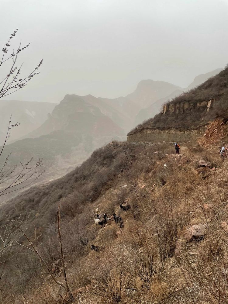 可能没有怎么攀升,也基本走的都是景区阳光大道,没怎么走驴道,大家的体力消耗不大,下山途中,兴致勃勃,看那层层叠叠,错落有致,类似五花肉的山体;赏烂漫山桃花和垂柳依依;一起做游戏,重返童年,玩老鹰抓小鸡,丢手绢等游戏;跟着牧羊人和他牵着的狼青去追赶羊群……