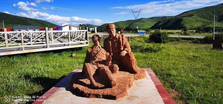 去甘南途经若尔盖,公路沿途有几处大型雕塑。很直观地看出这是在记念红军长征时期的英雄事迹为题材的具有弘扬革命传统意义的重塑。1934年红军二万五千里长征,最艰苦卓绝的爬雪山过草地就发生在若尔盖草原。