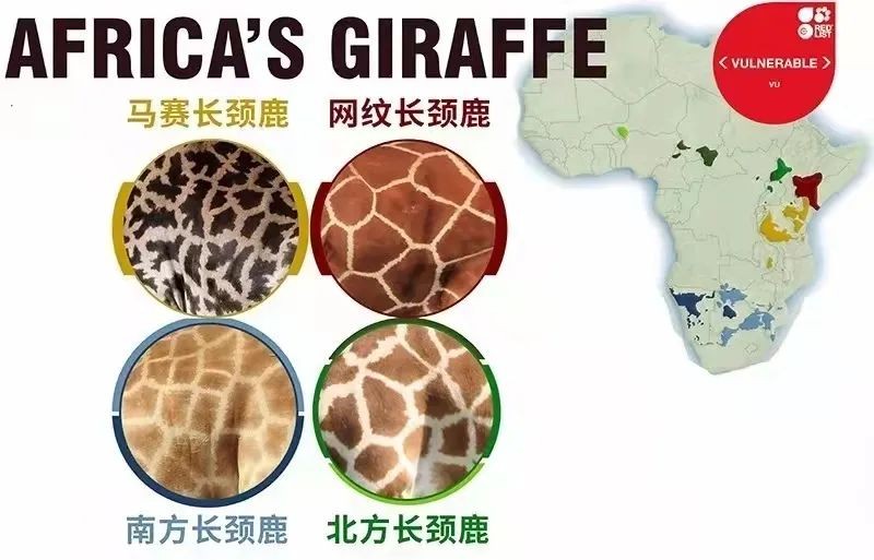 但是在非洲大草原上生存着不止一种长颈鹿,通过科学家们基因采样研究将长颈鹿分类为四个物种,即网纹长颈鹿、北方长颈鹿、南方长颈鹿和马赛长颈鹿(四个物种共分化出有9个亚种)。