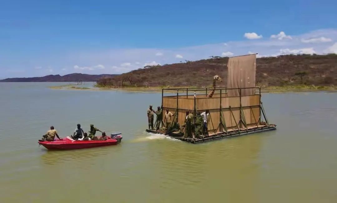 但是,保护长颈鹿的工作实际实施起来依旧困难重重,仅仅运输都是一个极大的挑战。2019—2021年在肯尼亚,人们花了15个月执行了一项“长颈鹿救援行动”,帮助9只长颈鹿搬了家,从一个即将被淹没的小岛,坐船搬到了大陆上的自然保护区里。近些年持续大雨,水位不断上涨,小岛变成了四面环水的孤岛,水淹了岸边的住房和商铺,也严重威胁了这几只罗氏长颈鹿的生存。因此,把岛上这群长颈鹿们撤离、转移到更安全的大陆区域,势在必行。但是,由于长颈鹿天性特别敏感加上其独特的心脑血管构造,都使得搬家工作必须缓慢的逐步完成。