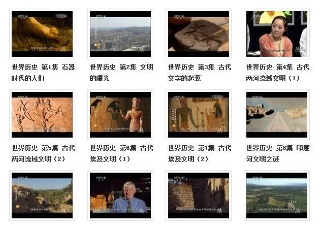 全片共有100集,依循时间顺序和因果关系,讲到了人类社会从原始时期到现代文明,几十亿年的世界历史进程。