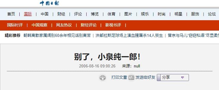 2006-08-16 中国日报 别了,小泉纯一郎!
