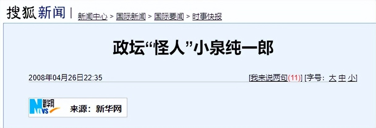 2008-04-26 搜狐新闻 新华网 政坛“怪人”小泉纯一郎