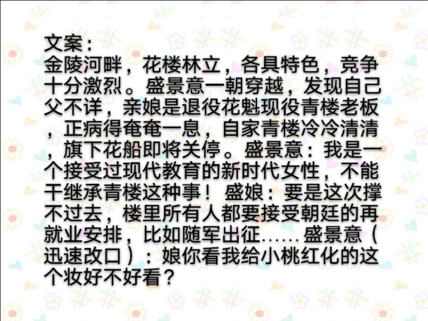 被设定吸引,这本小说一开始名字很直白叫穿越后继承了一座青楼怎么办?