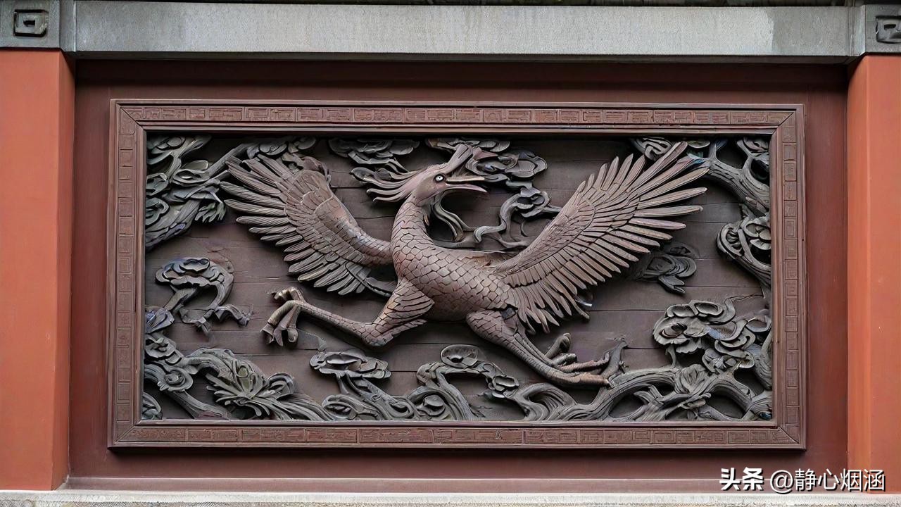 建筑装饰:在古代建筑中,朱雀的形象常被用于装饰屋脊、门窗和墙壁等部分,以增加建筑的神秘感和威严感。