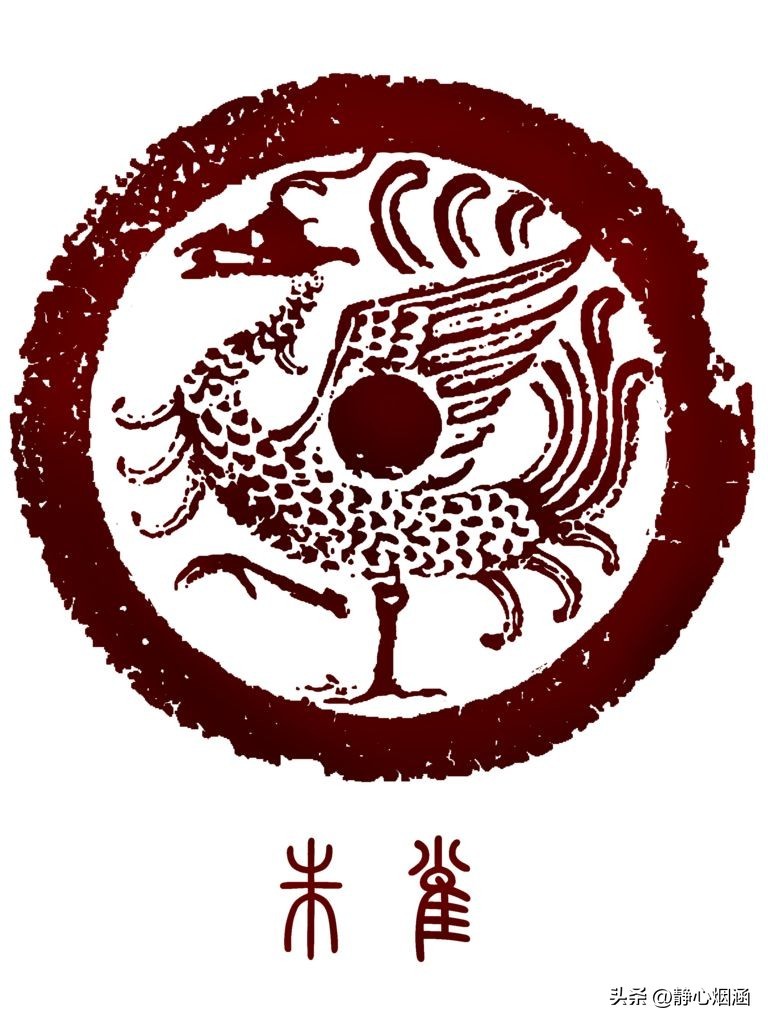 朱雀源于远古星宿崇拜,其起源可追溯到与龙、虎同样早的时代。在早期的星象遗存中,鸟与龙、虎等共同组成星象,可见鸟象在远古天文信仰中的重要地位。战国时期,人们将这南方七宿联起来想象成鸟形,并且与五行中的红色相配。