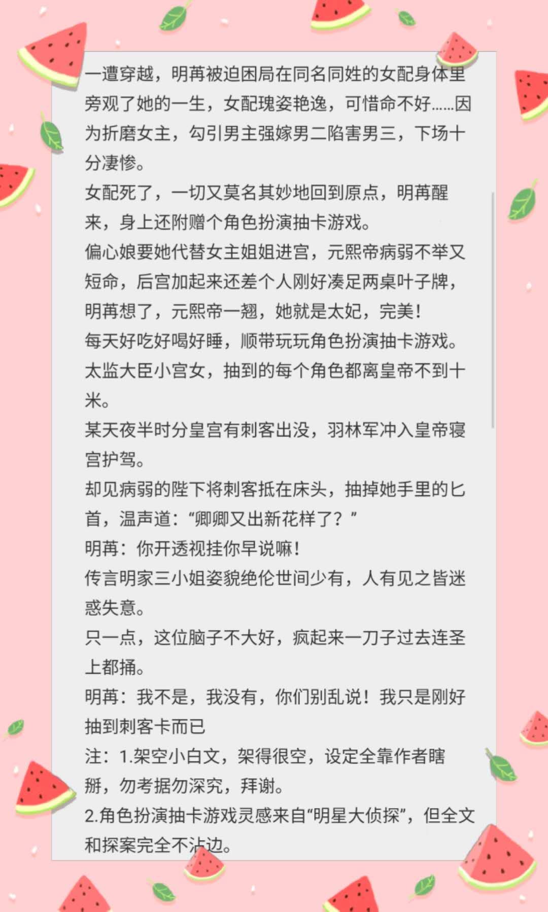 强推,超级好看!!!!男女主的性格都超级好,女主的系统设定也与众不同。没什么雷,男主是皇帝,有后妃但男主都没碰过,这篇文里好多设定都特别好玩,极品也多但都是别人故事中的品与男女主关系不大,放心看。