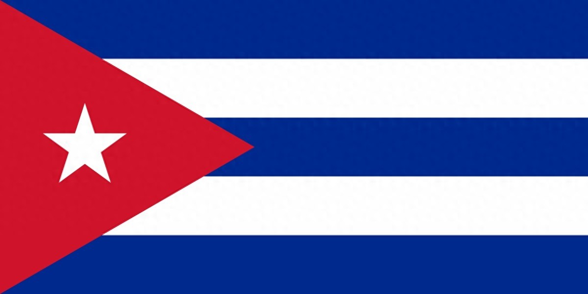 古巴国旗始于1849年,启用于1902年5月20日。是一面由五条蓝白 相间的横条、一个红色等边三角形和一颗白色五角星组成的旗帜。旗面左侧为红色等边三角形,内有一颗白色五角星;旗面右侧有三道蓝色宽条。五角星代表古巴是一个独立的民族。三角形和星是古巴秘密革命组织的标志,象征自由、平等、博爱和爱国者的鲜血。五角星还代表古巴是一个独立的民族。三道蓝色宽条表示古巴形成时由三部分组成,白条表示古巴人民的纯洁理想。